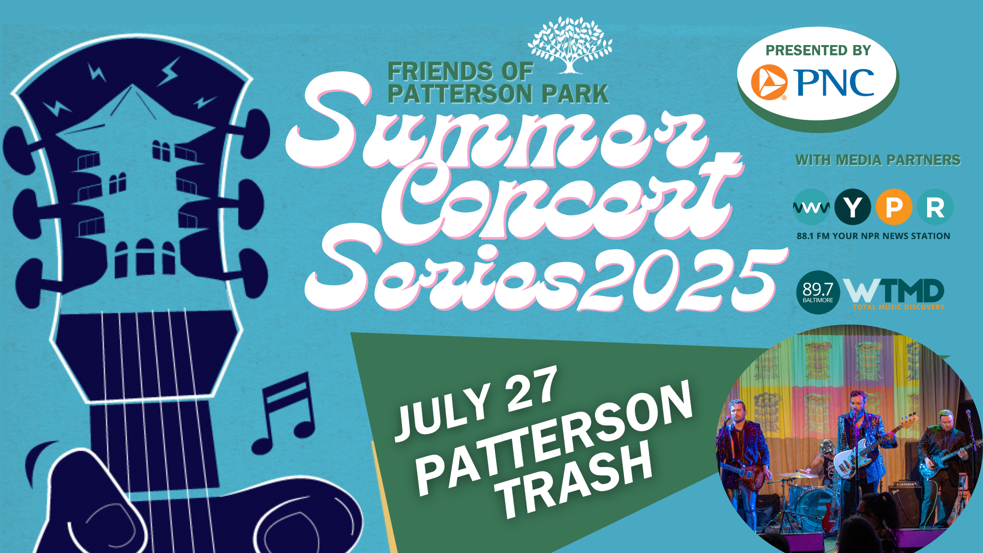 Join us for the Friends of Patterson Park Summer Concert Series, presented by PNC Bank with media partners WYPR and WTMD! This concert features the eclectic and electrifying sounds of Patterson Trash playing indie-, art- and experimental-rock! All concerts are 6 - 8 pm outside at the Patterson Park Observatory. Food and craft vendors, Friends of Patterson Park merch table, and more!
